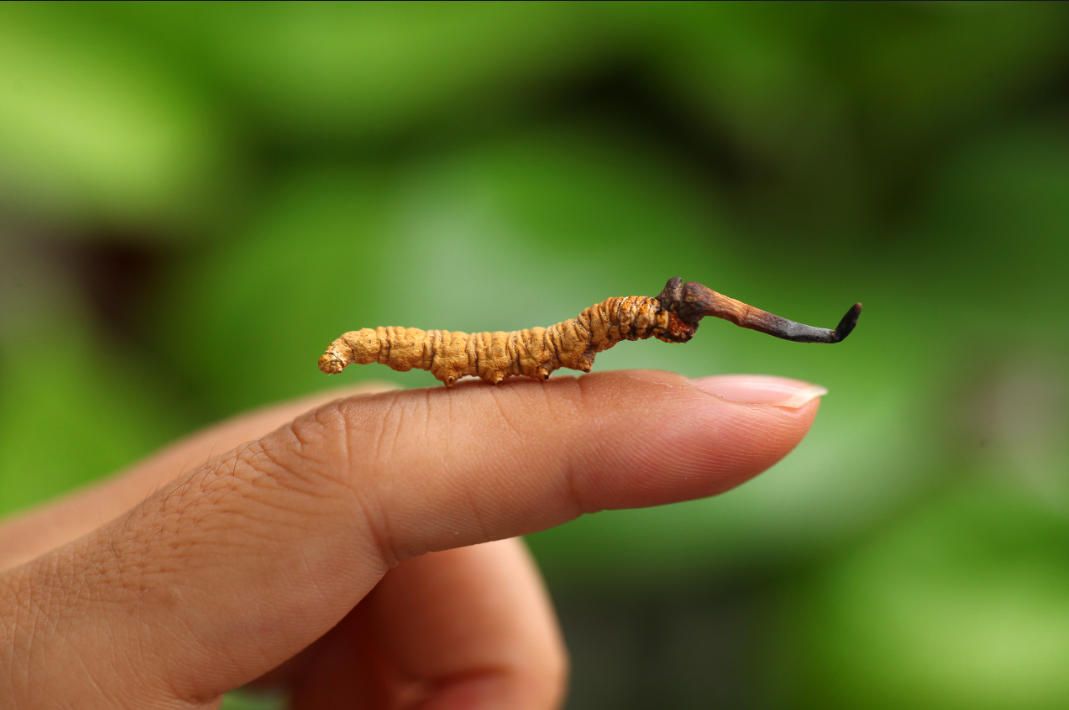 野生冬蟲夏草是蝙蝠蛾科昆蟲幼蟲被冬蟲夏草菌感染后形成的蟲與草的結(jié)合體。